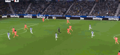 第32分钟,精彩绝伦,奥亚萨瓦尔凌空抽射破门,巴萨0-1